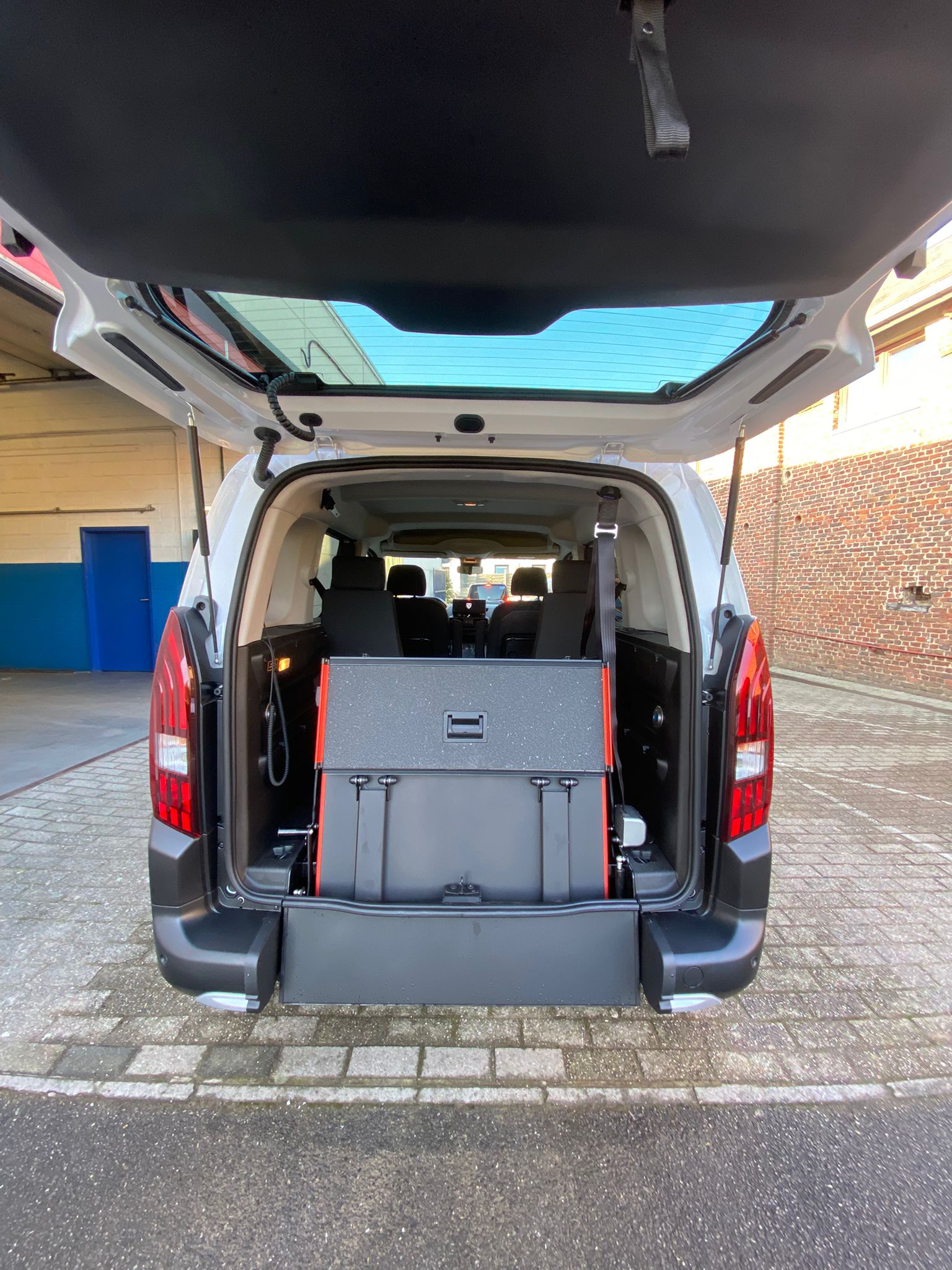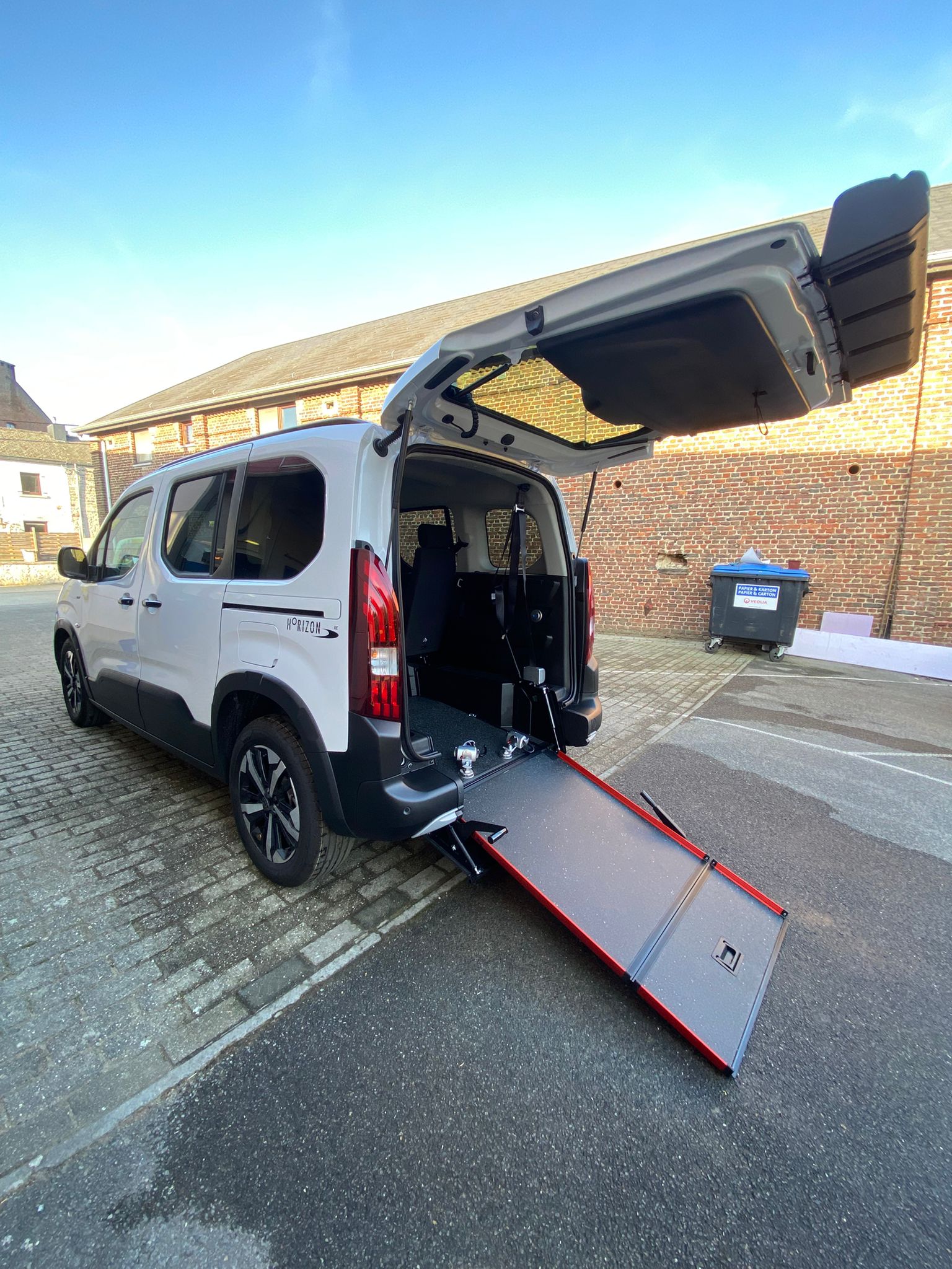 Nous vendons ce véhicule transformé pour le transport d’une personne en fauteuil roulant. En l’absence de la personne à transporter, la rampe se rabat à l’intérieur du véhicule de façon à conserver une surface de chargement classique.