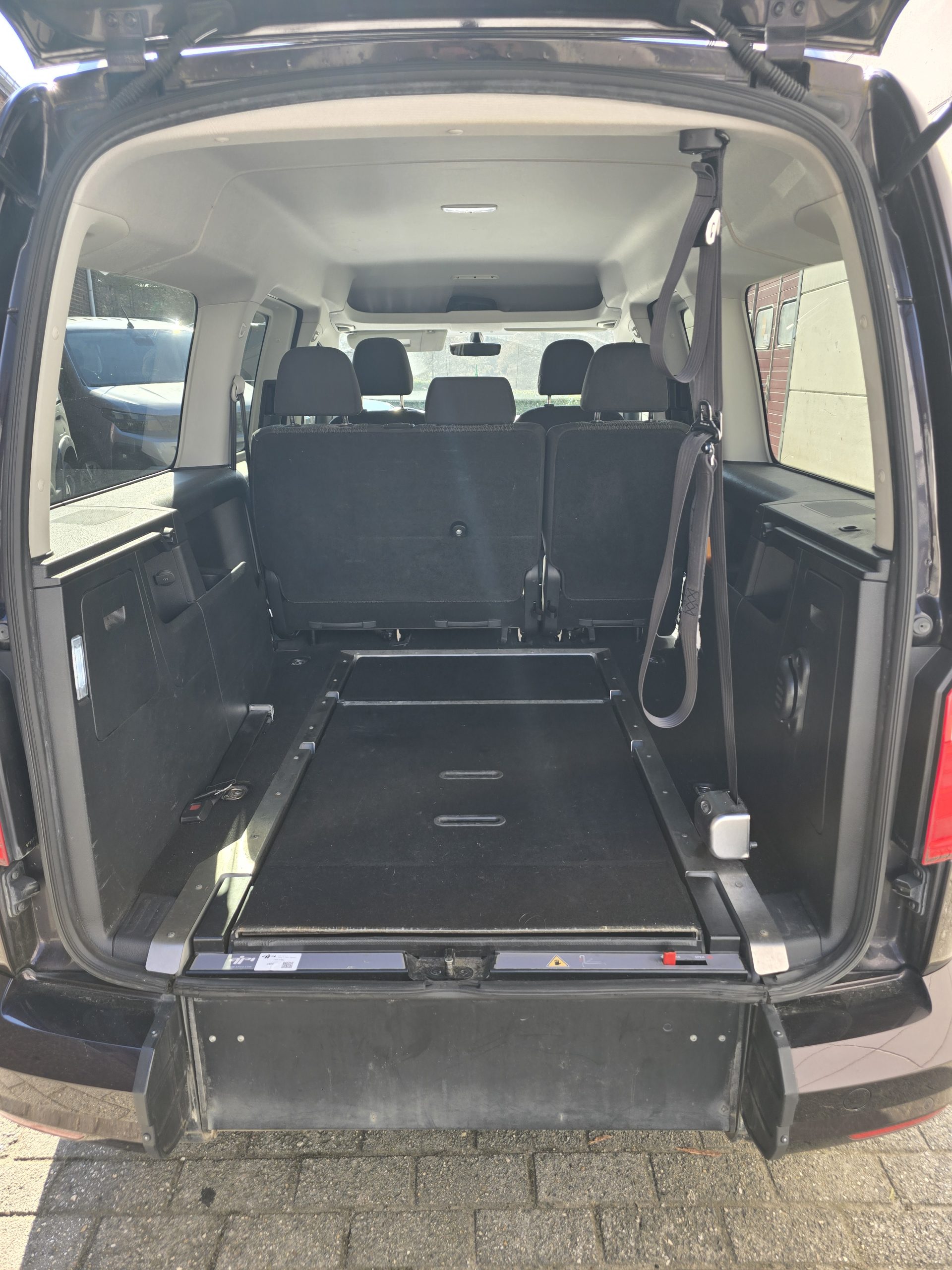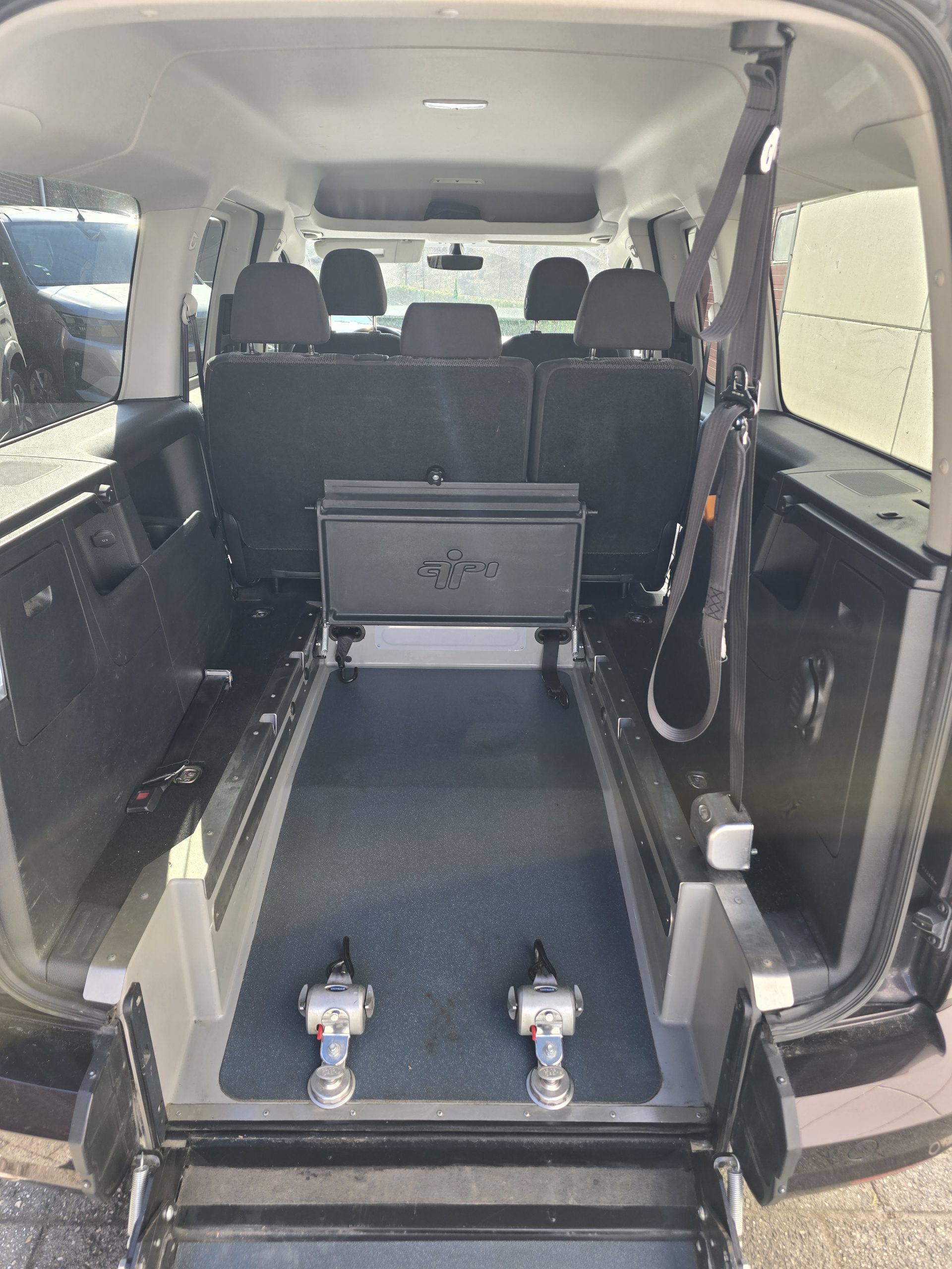 Nous vendons ce véhicule transformé pour le transport d’une personne en fauteuil roulant. En l’absence de la personne à transporter, la rampe se rabat à l’intérieur du véhicule de façon à conserver une surface de chargement classique.